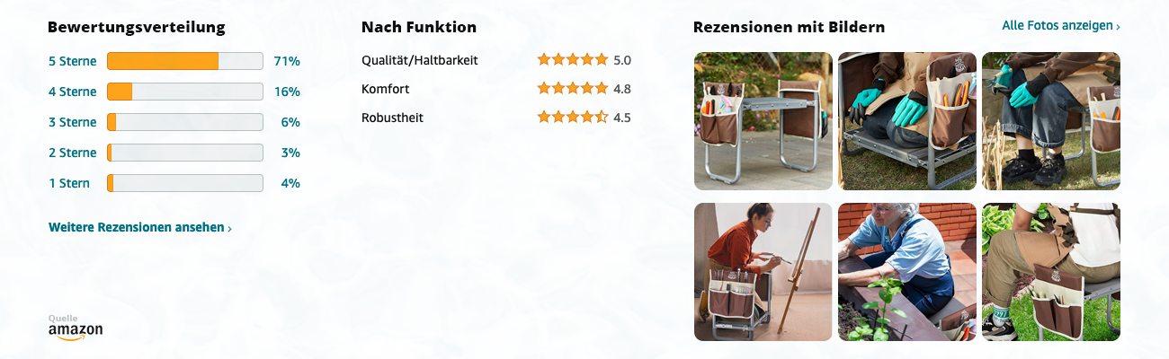 "Endlich! Genau was ich gesucht habe!" Insgesamt ist diese Garten-Kniebank ein Glanzstück in puncto Design trifft Funktionalität trifft glückliche Kunden – sie verdient jeden einzelnen Platz in den Gärten da draußen.